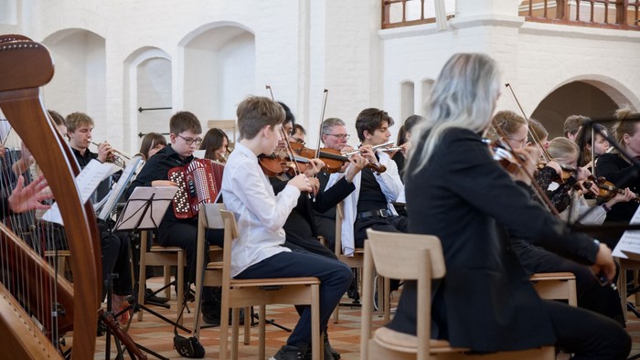 Velkommen til koncert med musikskoleelever fra Guldborgsund, Lolland, Næstved, Faxe, Stevns og Vordingborg sammen med deres musikskolelærere og Ensemble Storstrøm, under ledelse af dirigent Anne Lind.